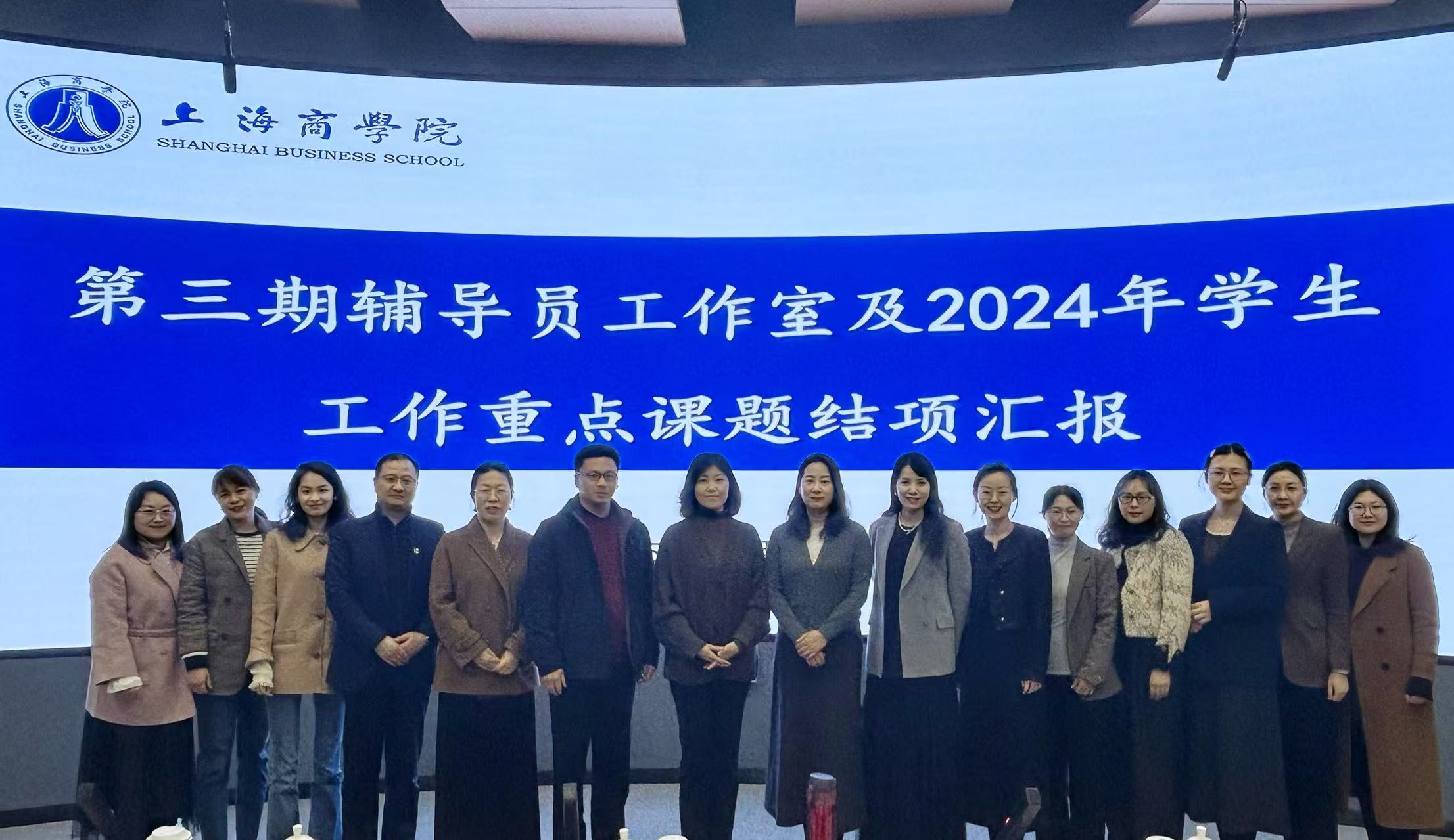 3月21日下午,上海商学院第三期辅导员工作室及2024年学生工作重点课题结项汇报会在中山西路校区112会议室举行。上海政法学院国际法学院党总支副书记陈娜、上海第二工业大学学生处思想政治教育科科长叶维明、东华大学服装与艺术设计学院学生工作办公室主任魏冰作为专家评委出席了本次会议,会议由我校党委学生工作部部长、学生处处长李爽主持。会议聚焦辅导员工作室建设成果与课题研究实效,通过汇报答辩与专家点评,进一步推动学校思政育人工作的专业化、品牌化发展。
