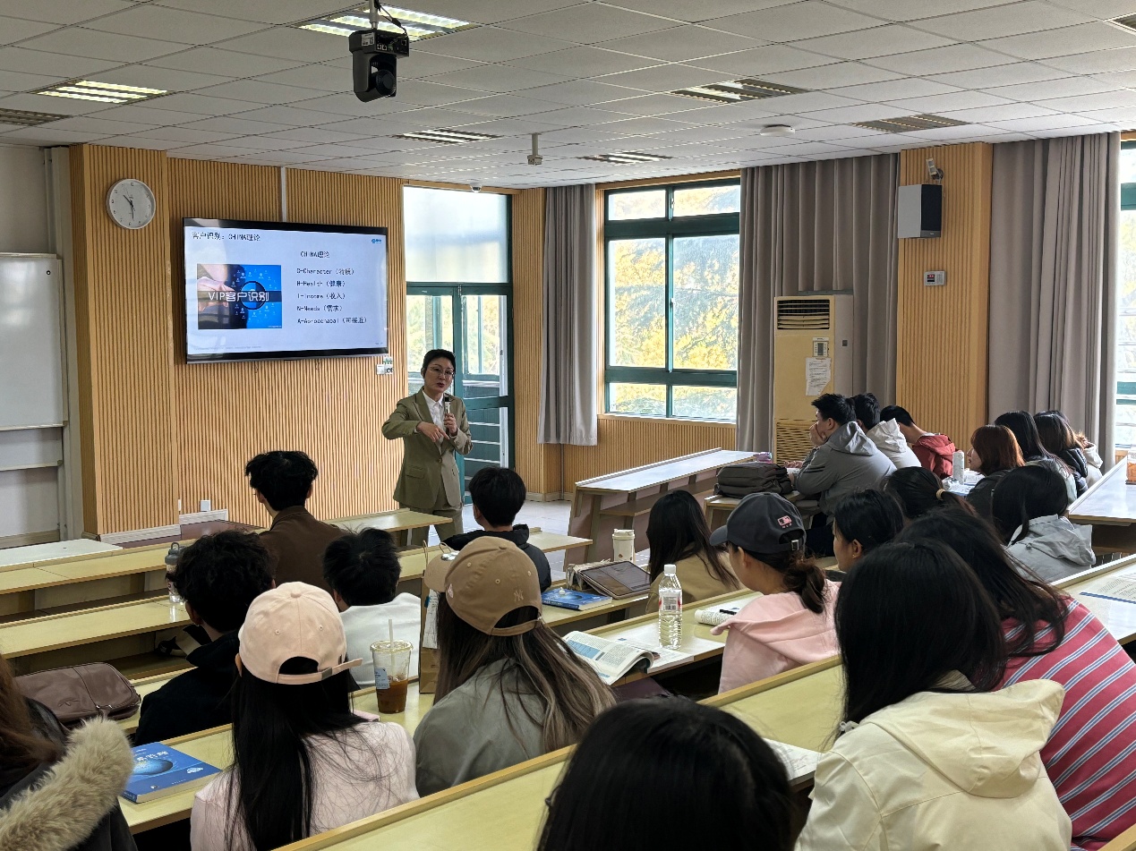 为进一步深化产教融合,推动专业教育与行业实践紧密结合,4月2日上午,同方全球人寿高级业务经理颜莉博士受邀走进上海商学院奉浦校区,为工商管理学院市场营销专业2024级学生带来了一场以“如何做好大客户经营和管理”为主题的精彩分享。颜莉博士凭借多年深耕一线市场的丰富实战经验,为同学们的专业学习注入了鲜活的产业视角,让课堂焕发出别样的生机。