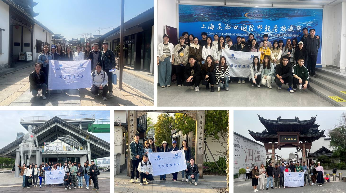 实践教学覆盖酒店、旅游、休闲、邮轮等多个业态,通过实地考察上海徐汇滨江城市更新项目,学习现代都市休闲空间的规划与运营理念;在泗泾古镇历史与文化的交融中,探索传统文旅项目的保护与创新开发;以休闲新场景蟠龙天地为案例,调研新兴休闲商业综合体的业态布局与消费场景设计;参观考察上海宝山吴淞邮轮母港,深入了解邮轮经济的产业链构成及服务管理要点。