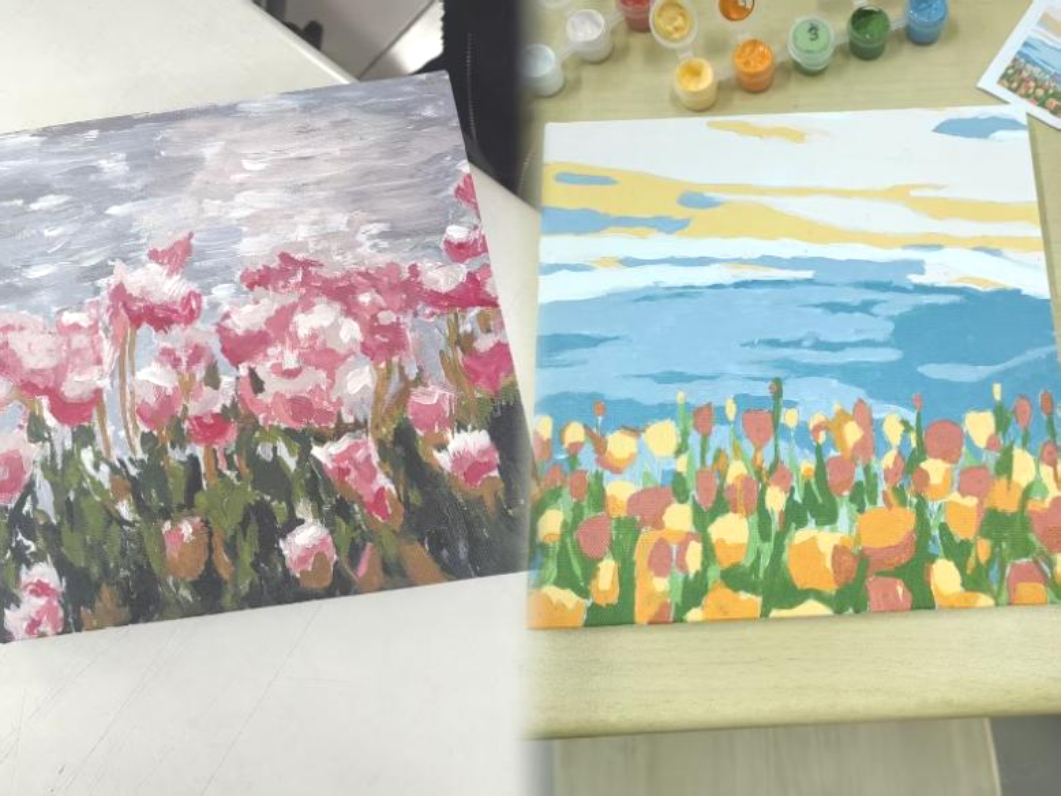 商务外语学院开展“以画为礼,共赏芳华之美”油画DIY活动