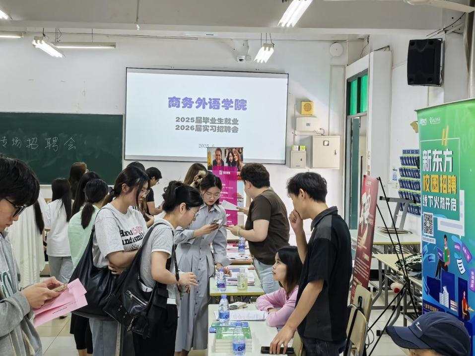 为切实做好商务外语学院学生就业实习工作,促进毕业生与用人单位的精准对接,商务外语学院于6月3日下午成功举办2025届毕业生就业招聘会暨2026届毕业生实习招聘会。此次招聘会在奉贤校区4号楼118、122教室举行,吸引了全校学生积极参与。