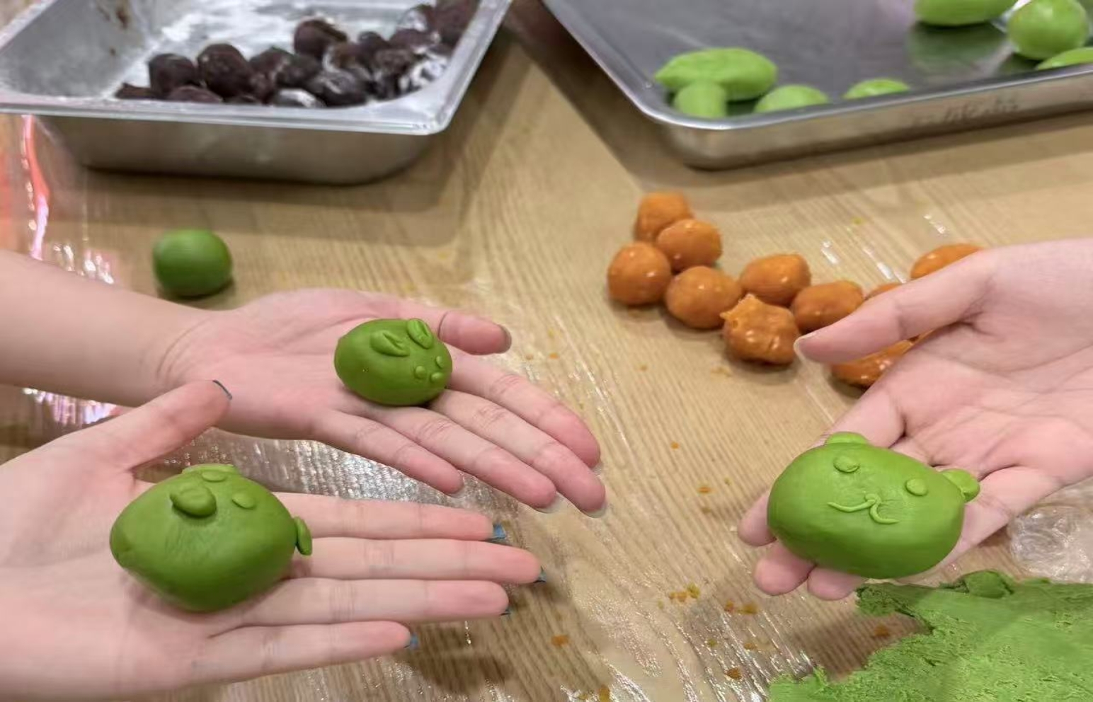 聆听讲解后,师生分组协作、动手实践,大家配合默契,亲手制作出一个个翠绿圆润的青团。指尖流转间,不仅是传统手工技艺的传承,更饱含着对革命先烈的缅怀之情,现场氛围温馨庄重,欢声笑语中兼具民俗温度与红色情怀。