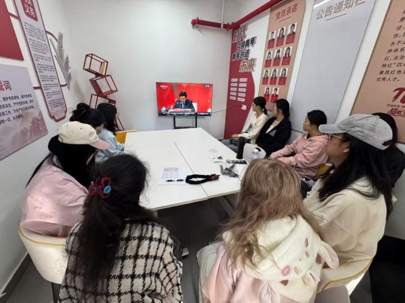 图为学生党员直播观看党的二十届四中全会精神新闻发布会