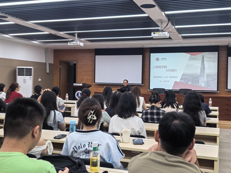 随后,国际商务专硕(MIB)新生在1401会场参加MIB专场会议。李育冬教授围绕学院人才培养特色与国际商务专业展开阐述,他指出学院拥有一支经验丰富、责任心强的导师队伍,将为同学们的科研与职业发展提供有力支持。李育冬教授还分享了往届毕业生在就业市场上的优异表现,并以此激励新生树立远大目标,脚踏实地、追求卓越。同时他特别强调了实习实践在研究生培养中的关键作用,指出实习不仅是衔接理论与现实的桥梁,更是锤炼专业能力、拓展职业视野的重要途径。