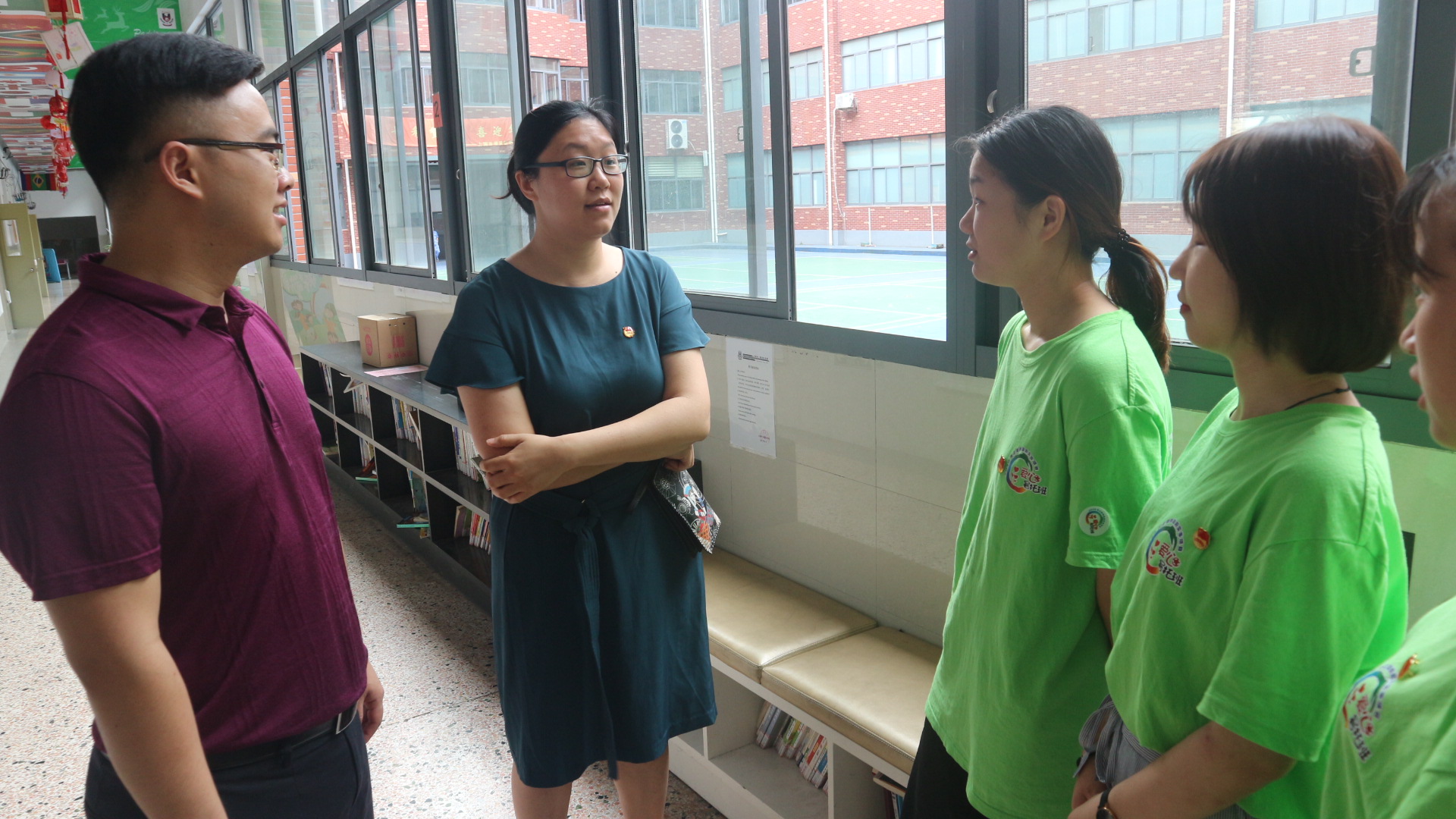 8月9日,校团委副书记孙旭东在奉贤团区委副书记甘德富的陪同下,一同来到上海市奉贤区教师进修学院附属学校、上海帕丁顿双语学校,向假期依旧参与爱心暑托班的志愿者们送来夏日清凉的慰问。