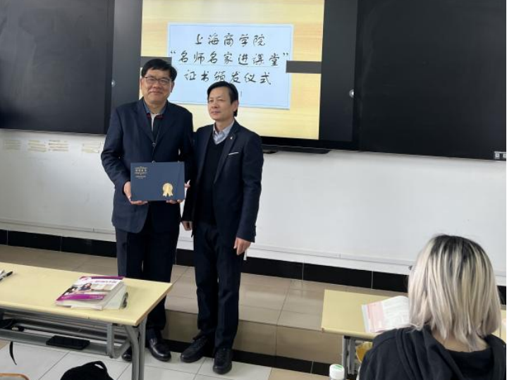 课程结束后,商务外国语学院院长段俊晖为马利中教授颁发了“名师名家进课堂”荣誉证书,并合影留念。段院长表示,“名师名家进课堂”活动旨在为学生搭建更广阔的学习平台,邀请行业内的知名专家学者走进校园,分享前沿知识与实践经验,帮助学生了解专业领域的最新动态,提升综合素质。此次马利中教授的授课,正是这一活动的生动实践,为同学们提供了宝贵的学习机会,对培养学生的国际视野和跨文化交流能力具有重要意义。