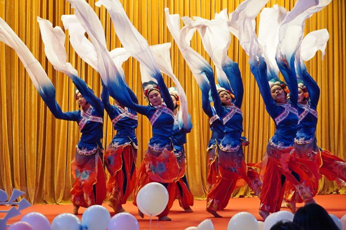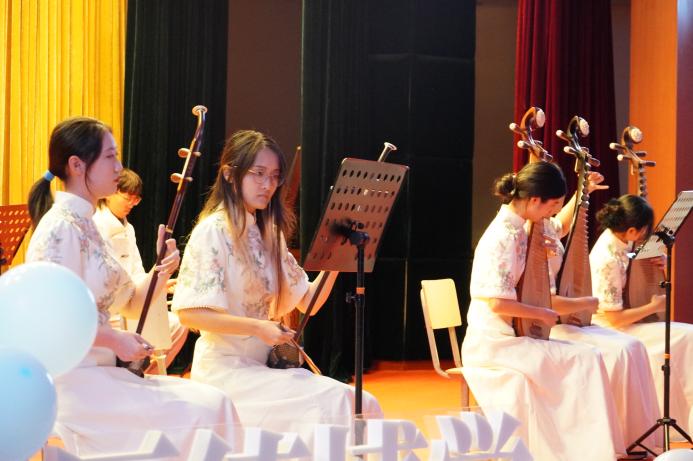 晚会在筝团《盛世国乐》的表演中拉开序幕,恢宏大气、磅礴壮观的乐声为新生呈现了一场视听盛宴。整场晚会节目精彩纷呈,既有校大学生艺术团各表演队带来的精彩表演:合唱团《歌曲串烧》、舞蹈队《夜深沉》、话剧团《少爷和小姐》、民乐团《市集》、管弦乐团《人生的旋转木马》以及主持队《青春中国》,还有KB韩舞社、Reborn街舞社带来的街舞表演,向新生展现了上商丰富多彩的校园文化以及上商青年的青春活力。舞台上,学长学姐们用节目讲述着上商故事;舞台下,学弟学妹们用热情的掌声和欢声回应着每一个精彩瞬间。