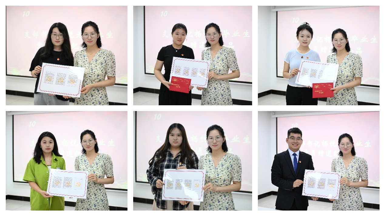 离别之际,温情寄语。支部向每一位毕业生党员赠送纪念品,包含一份装裱精美的入党申请书——镌刻着入党初心与誓言,提醒党员时刻牢记“我是谁、从哪里来、为什么出发”,一个内含崭新党徽和学习笔记本的礼盒——象征着身份的荣耀与传承,寄托着组织对毕业生党员在人生新起点上持续学习、锤炼党性、续写奋斗篇章的殷切期望。