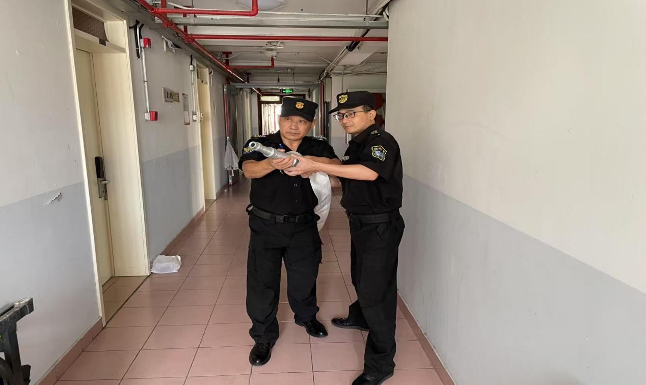 在理论培训结束后,三校区微型消防站队员们开展了小型锂电池爆燃的初期处置演练。演练模拟了在宿舍内突发小型锂电池爆燃的场景,队员们接到消控室警报后,第一时间携带装备赶赴现场。模拟操作干粉灭火器、室内外消火栓等对其进行扑救。在演练过程中,队员们分工明确,有条不紊地完成了处置任务,使他们对突发情况的初期处置有了更直观、深刻的认识。