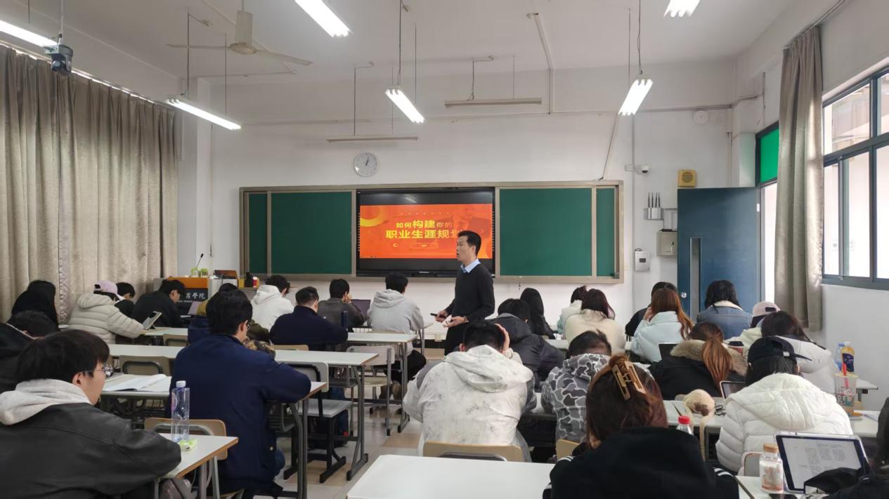 讲座过程中,耿斌特别注重与学生的互动交流。他多次停下讲解,主动询问在场学生的职业规划想法,并邀请几位同学分享自己的困惑与目标。针对同学们提出的问题,他结合自身经验进行了细致的解答和个性化的建议,现场气氛热烈,互动频繁,让同学们在交流中获得了更具针对性的指导。整场讲座内容丰富、案例生动,有效帮助同学们厘清了职业发展思路,增强了对职业生涯规划的认知与信心。