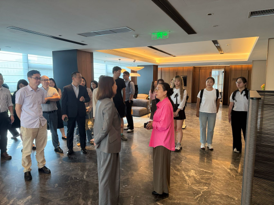 7月16日下午,校党委教师工作部与酒店管理学院联合举办的2025年第4期(总第19期)“弘德·立商”青椒沙龙暨青年教师产学实践赋能活动,在产学实践基地——闵行区浦江中心城际酒店成功举行。本次活动通过校企联动、现场调研与专题研讨相结合的形式,由酒店管理学院院长姜红、副院长符全胜及食品系主任黄玥带队,组织学院青年教师、研究生、本科生代表围绕“智能运营”、“人才需求”和“在线教学”等热点议题,开展了沉浸式教学调研与深入交流。党委教师工作部副部长曹剑涛参加本次产学实践与交流活动。