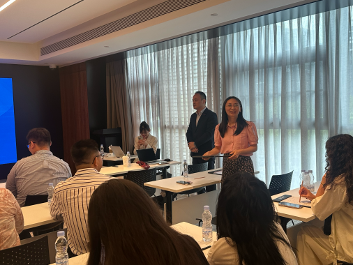 随后,双方在城际酒店会议室举行座谈交流。城际酒店虹桥机场店总经理尹正伟和华住集团人事经理张昌茹以“人才为本,技术赋能”为题分享了华住集团在经济型酒店板块的用人理念与核心竞争力。尹正伟指出,华住始终坚持“会员为核心”与“千城万店”战略,伴随集团高速扩张,对懂技术、善管理、具备创新力、适应力、团队力的复合型酒店人才提出了迫切需求。张昌茹也系统介绍了目前应届生实习、岗位设置、能力要求等内容,呼吁高校教学应在强化基础知识之余,更加注重信息系统操作能力、客户沟通技巧与商务礼仪等“软实力”训练。