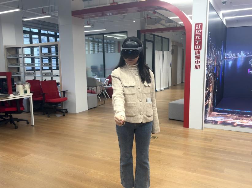 随后,市政协一行在实验室志愿者引导下,分组体验了红色元宇宙互动场景。市政协党支部党员们佩戴MR眼镜后,沿着虚拟脚印依次完成“点燃革命火种”“运送急救药品”“修复红色铁轨”“启动希望列车”等剧情化关卡,通过手势交互、眼动追踪等技术,沉浸式重温建党初期的艰辛历程,感悟革命先辈的奋斗精神。所有体验者均顺利完成体验,对“科技让红色历史可感可触”的创新形式给予高度认可。