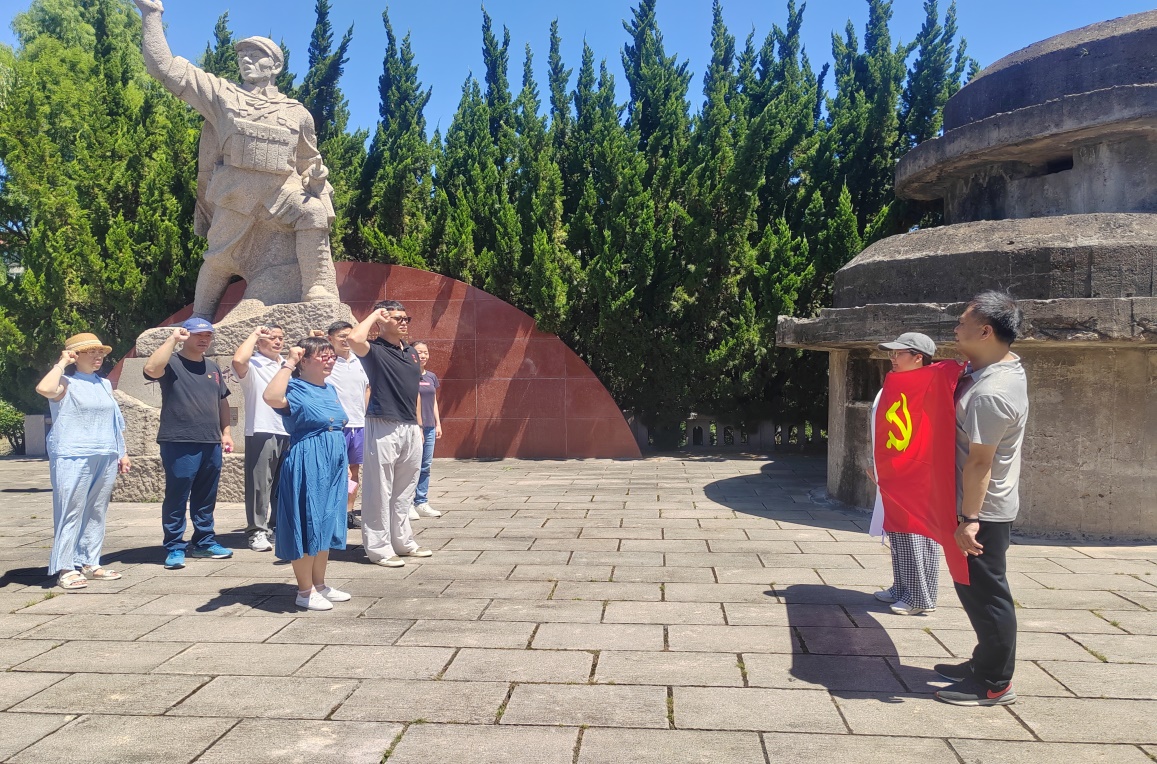 在庄严肃穆的碉堡遗址前,预备党员蔡金兴同志举行了入党宣誓仪式,全体党员也一同重温了入党誓词。铿锵有力的誓言表达了全体党员不忘初心、牢记使命,永葆共产党人政治本色的坚定决心,红色精神感染着一代又一代的共产党人。