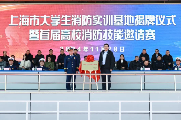 邀请赛结束后,上海市消防实训基地揭牌仪式正式开始。来自市教委、市消防救援局的领导共同为上海市大学生消防实训基地揭牌,各高校代表见证着这一重要平台正式投入使用。