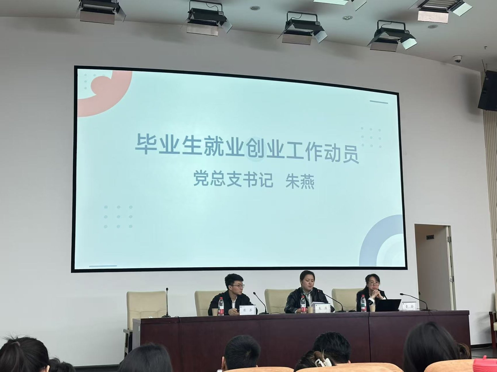 随后,学院党总支书记朱燕作就业创业工作动员讲话。她从三个方面对毕业生提出期望:一是认清形势,坚定信心,在变革的时代找准定位,希望毕业生理性分析就业市场变化,明确自身职业发展方向,避免盲目求职;二是积极准备,主动出击,在求职路上展现最佳状态,强调毕业生要提前规划求职流程,主动参与招聘活动,以良好的精神面貌迎接每一次机会;三是志存高远,脚踏实地,在职业发展中实现人生价值,鼓励毕业生将个人理想与社会需求相结合,在平凡岗位上积累经验,逐步实现职业目标与人生价值。