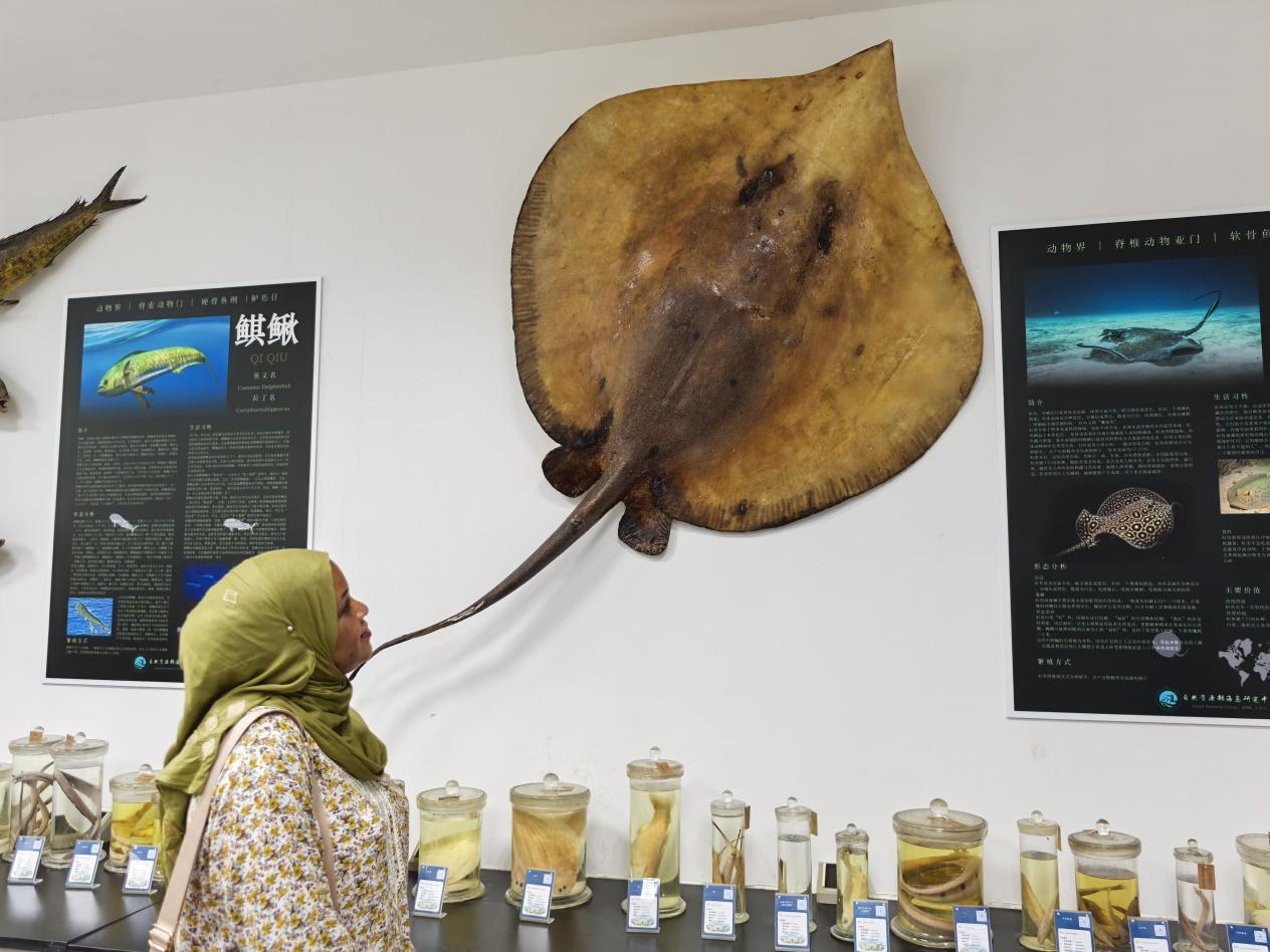 随后在福州的考察中,阿曼感受到了这座城市不断探索生态旅游与文化保护融合路径的独特魅力。尤其是自然资源部海岛研究中心的考察令她印象深刻,标本室内的大型生物标本吸引了她的视线,她提到自己国家同样有许多大型生物但没有可以将它们保存下来的办法,她期待能和自然资源部海岛研究中心未来开展相关合作。