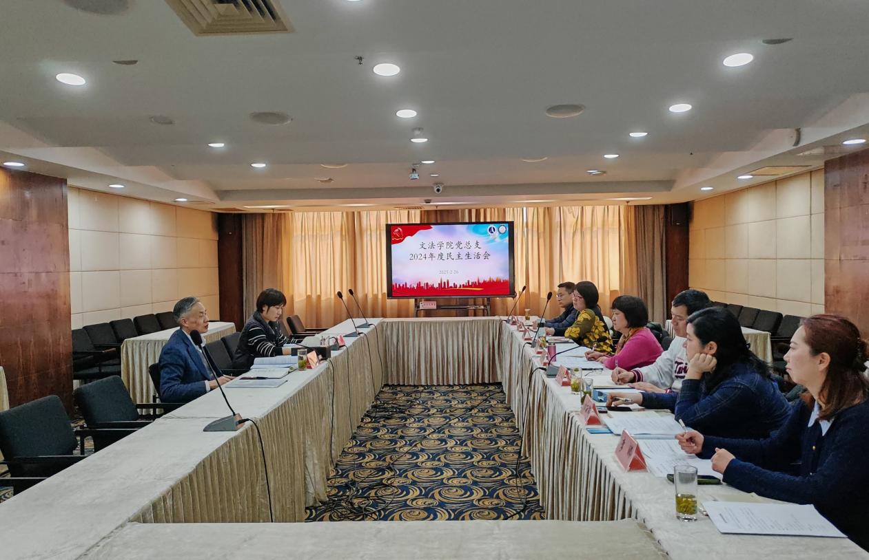 2月26日下午,文法学院党总支在奉浦校区综合楼703会议室召开2024年度民主生活会。此次会议围绕深入学习贯彻习近平新时代中国特色社会主义思想、巩固党纪学习教育成果开展,旨在为学院发展凝心聚力,推动学院迈向新台阶。校党委督导组组长、党委副书记陈晓峰,组织部干事张娓娓到会指导。会议由文法学院党总支书记朱永莉主持,文法学院、体育健康学院领导班子成员参加会议,党总支委员列席会议。