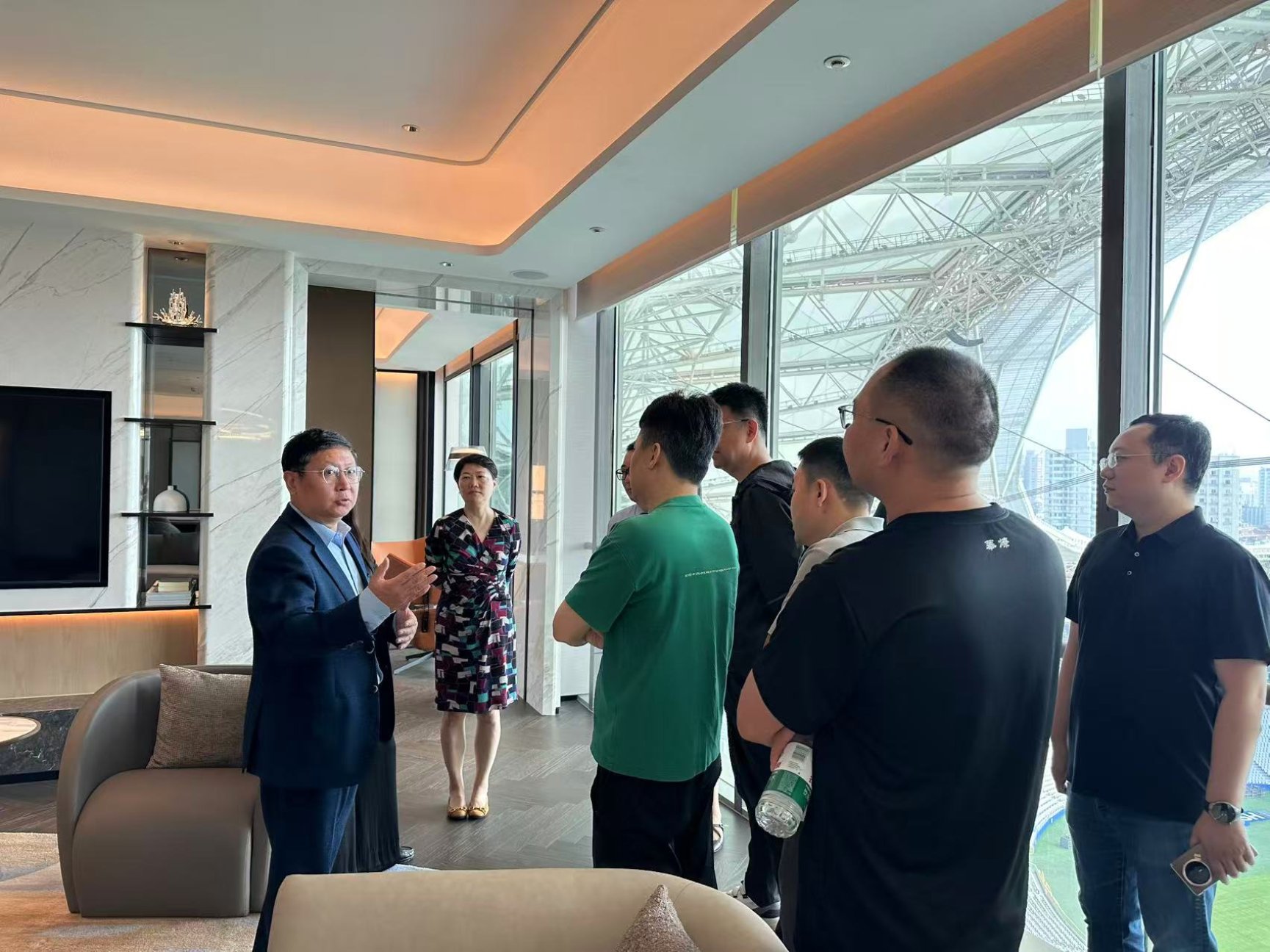 研修班上午的行程聚焦于酒店与文体领域的融合运营实践,全体学员前往上海奥林匹克俱乐部丽笙酒店开展实地考察学习。学员们先后参观了酒店客房、玖·裡中餐厅及现代化健身房等核心设施,近距离感受酒店在空间设计、服务流程、功能布局等方面的精细化运营理念,尤其是对酒店如何结合文体属性打造差异化服务体验有了直观认识。