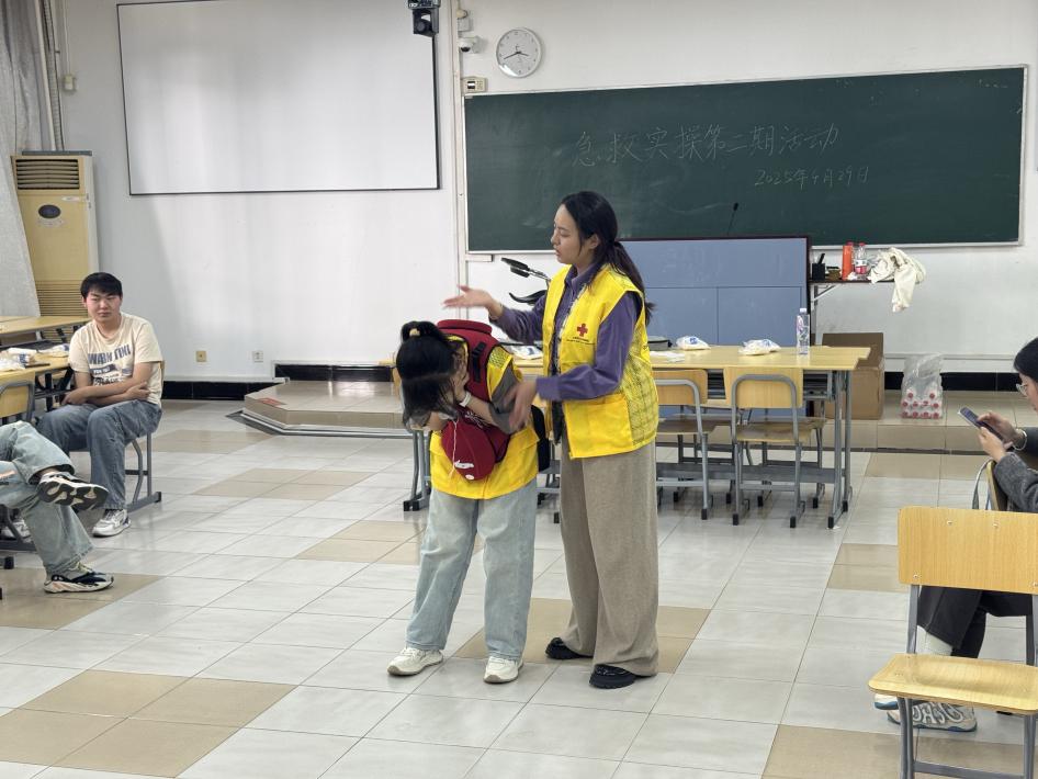 活动中,我校红十字会学生分会会长唐祎婷同学进行了分享交流,她紧扣“提升学生急救意识与实操技能”的目标,系统阐述了队伍“志愿者队伍建设”与“实践赋能行动”两翼并行、“基础普及—技能掌握—应用实践”三步一体的推进方法,详细介绍了以“线上宣传+线下实践”为核心,开展知识竞答、急救纪录片观影、专业知识宣讲会、急救技能实操训练、急救包DIY及应急保障实战演练等系列活动,切实推动“人人懂急救、人人会急救”的理念落地校园、深入人心。