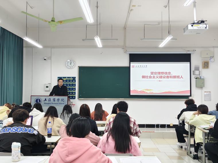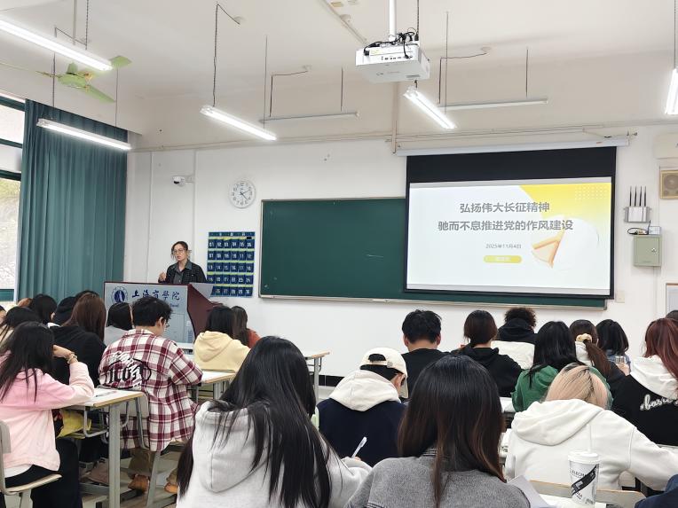 2025年11月4日,上海商学院商务经济学院、工商管理学院、艺术设计学院分党校联合2025-2026学年秋季入党积极分子培训班第三讲在奉浦2号楼210教室举行,上海电力大学马克思主义学院副院长赵铮老师与上海健康医学院组织部副部长蒋瑛瑛老师先后为同学们授课。赵铮老师主讲的《坚定理想信念,做社会主义建设者和接班人》剖析了新时代青年筑牢信仰之基、担当复兴大任的思想与行动方向;蒋瑛瑛老师主讲的《弘扬伟大长征精神,驰而不息推进党的作风建设》则揭示了将精神滋养转化为攻坚克难、推进事业发展的现实路径。