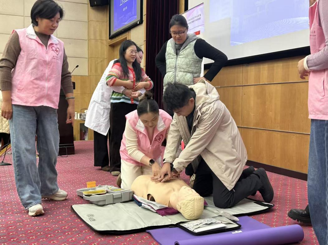 实操演练环节,奉贤区中心医院医护团队现场演示了AED操作与心肺复苏技能,从规范动作讲解到手把手指导练习,帮助辅导员切实掌握应急救护本领。辅导员们积极参与、认真实操,纷纷表示此次培训不仅提升了自身应急处置能力,更让大家深刻认识到,守护学生健康是思政工作的重要组成部分,只有练就过硬的“健康守护技能”,才能在关键时刻为学生生命安全保驾护航。