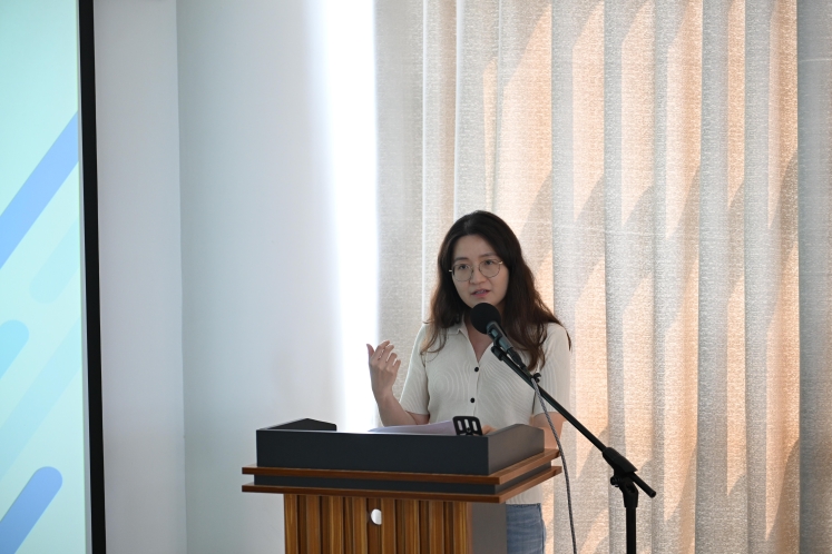 该部分由东亚语言文化系日语专业青年教师时秋主持。在本次沙龙的主题交流环节中,商务外语学院的田甜、彭颖、朱晨昭、娄珺等教师分别分享了他们在人工智能与语言教学融合方面的研究成果与实践经验。田甜探讨了在AI时代如何寻求语言教学中“智能工具”与“人文引导”的平衡之道,以培养学生的跨文化交际能力;彭颖结合自身教学实践,分析了AI技术在大学英语教学中的应用现状、面临的挑战以及运用AI实现课堂与课后的教学革新;朱晨昭介绍了如何用日语解锁AI,通过日语教学与AI技术相结合,开启人机协同赋能语言学习的创新篇章;娄珺则聚焦于AI时代朝鲜语教育的跨学科重构,结合其他院校的发展趋势,探索了AI技术在教学与评估中的创新应用。