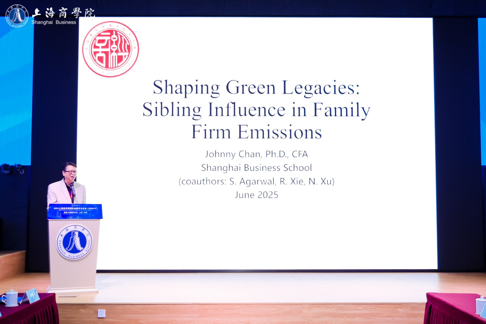 最后一场主旨演讲由上海商学院陈锦全特聘教授带来,他基于家族企业高管背景数据,揭示了企业治理与碳排放的关联机制。陈教授深耕公司金融与可持续发展交叉领域,其研究通过大规模企业样本分析,发现高管家庭背景特征显著影响企业碳减排决策,这一发现为绿色金融政策制定提供了微观层面的实证依据。