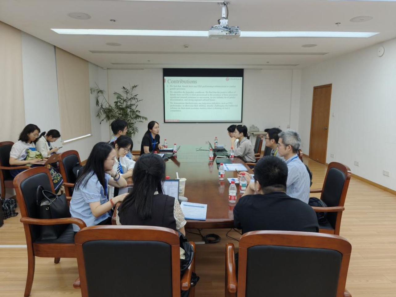 宾夕法尼亚州立大学贝伦德的高雪辰主持的Session 8会场中,七位学者展示了学术研究成果。重庆工商大学宗老师从债权人司法保护视角探讨了其对产业供应链的影响;首都经济贸易大学学者聚焦数据元素,研究了其对企业ESG效果的作用;贵州大学学者则深入剖析了家族企业初始所有权来源与关联交易行为的关系。