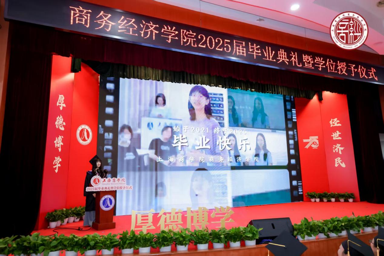 6月的校园绿荫如盖,栀子飘香。上海商学院商务经济学院2025届毕业生毕业典礼于6月10日下午在4号楼146报告厅举行。学院党总支书记朱嫣嫣、院长李志刚、党总支副书记、副院长沈爱玲、副院长周宜昕、各系部负责人、教师代表、辅导员及400余名毕业生齐聚一堂,共同见证这一庄严而温馨的时刻。本次典礼由沈爱玲主持。