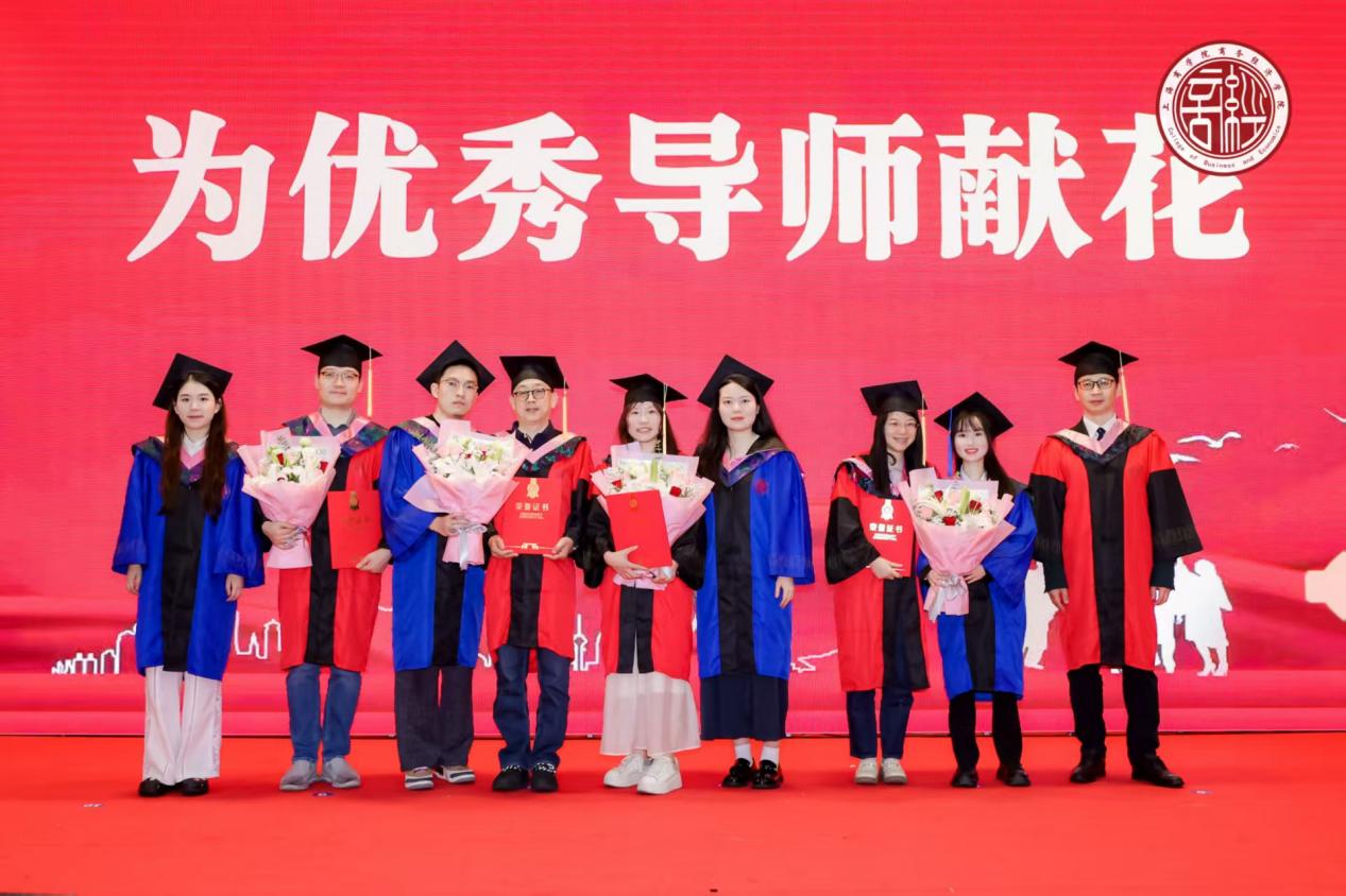 典礼的第二项议程,由朱嫣嫣宣读了优秀毕业生表彰决定,共有37名本科生、4名研究生获得市级、校级"优秀毕业生"荣誉称号,朱嫣嫣为获奖代表颁发证书。随后,李志刚为四位优秀研究生导师颁发荣誉证书,感谢他们在育才路上的坚守和奉献。