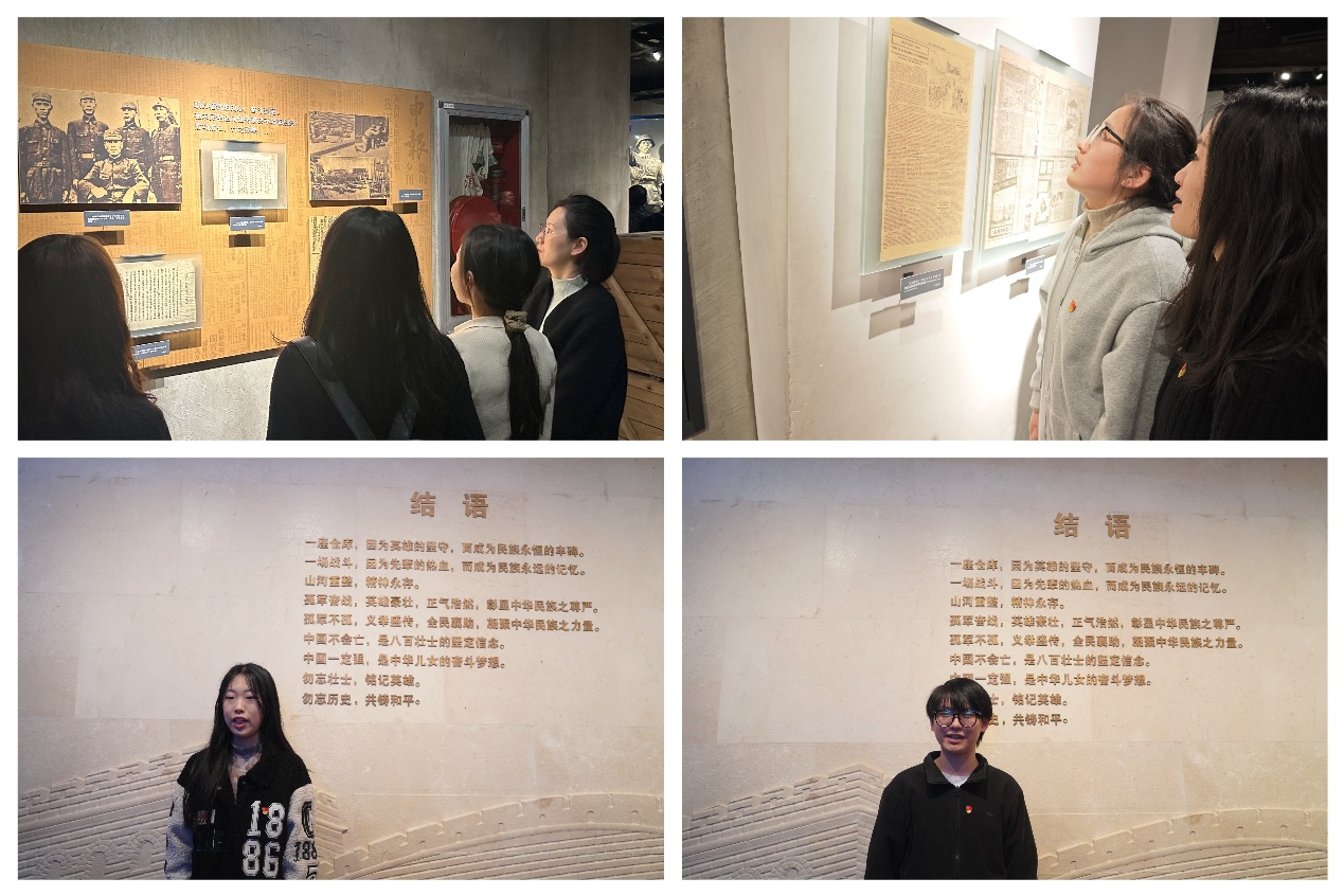 光影定格峥嵘史,青春接力守铁规。在参观抗战纪念馆的过程中,学生党员们用镜头记录下“严明纪律”“清廉作风”“违纪警示”等纪律印记,定格一幕幕发生在四行仓库的历史画面。支部成员们纷纷表示,此次清明主题活动不仅是缅怀的时刻,更是校准纪律坐标的契机。作为新时代的学生党员,既要守护先烈用生命捍卫的信仰,更要以严明纪律护航事业发展。历史与当下在此共鸣,奏响新时代铁纪传承的强音。