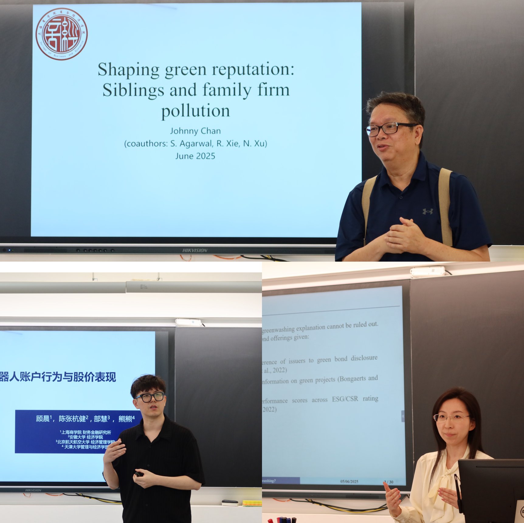 财务金融研究所陈锦全教授、顾晨副教授,以及产金融合学院教师李书宇,分别在学术研讨会上分享了各自最新的研究成果。与会教师认真听取了报告,并展开讨论,既对报告的研究方法和结论表示了肯定,也积极提出了新的研究思路和可能的改进方向,同时坦诚地指出了研究中存在的不足和局限性。这种开放、坦诚、深入的学术交流,不仅促进了双方对研究问题的深入理解,也碰撞出了新的学术火花,为进一步完善研究提供了宝贵的建议,充分展现了学术交流在推动学术进步、提升研究质量方面的重要价值。