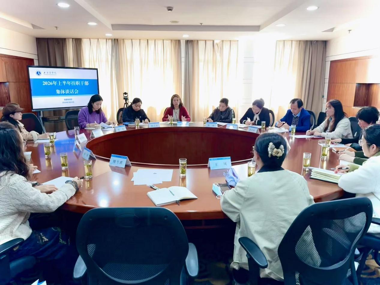3月30日下午,学校2026年上半年挂职干部见面会暨集体谈话会在奉浦校区综合楼705会议室召开。校党委组织部部长朱巍娟出席会议并讲话,相关挂职接收部门负责人及本次选派的11位挂职干部参加了会议。会议由党委组织部副部长郁敏主持。