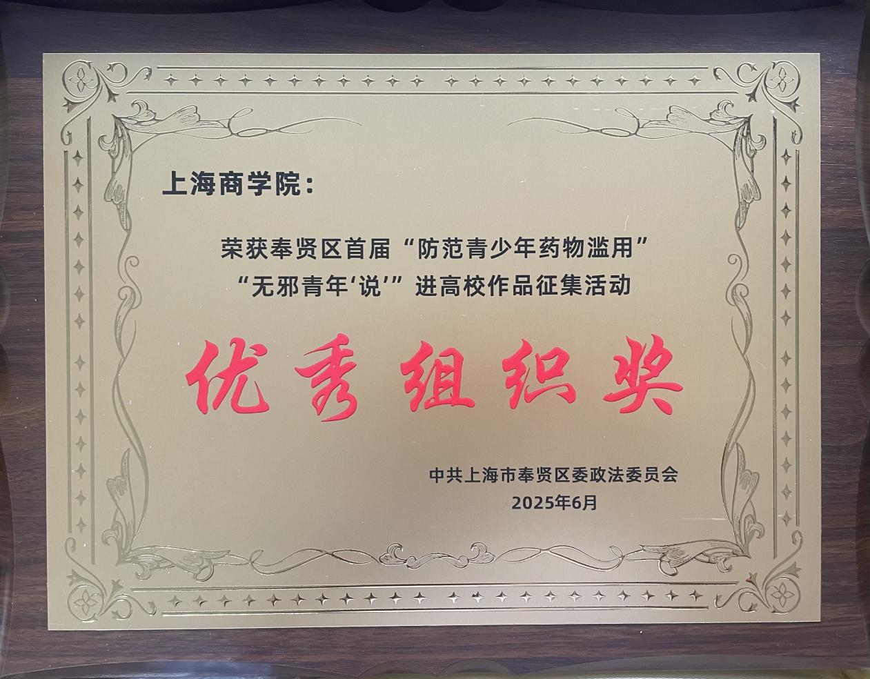 图为我校优秀组织奖奖牌