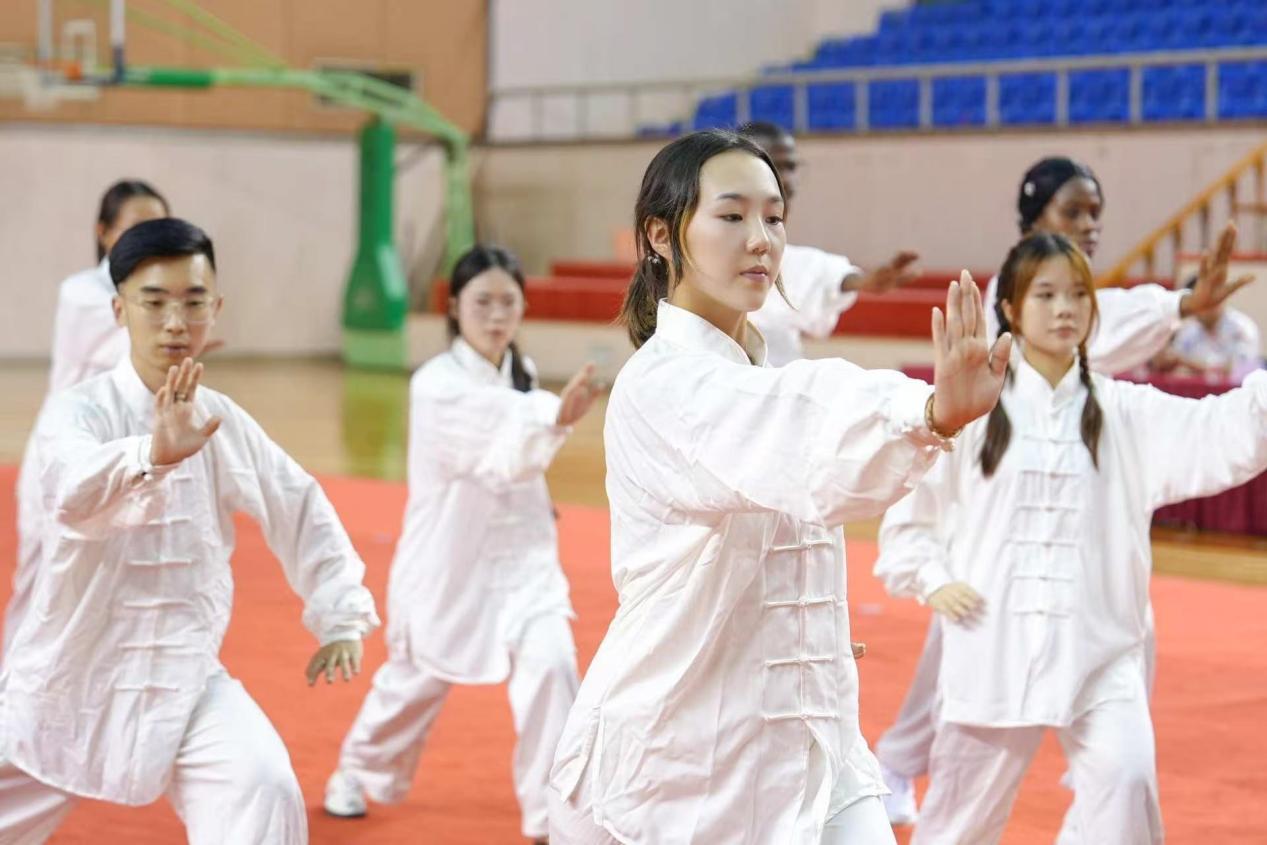 伴随着传统狮子舞、中国古典舞《西子湖·初妆》和武术表演“太极神韵”,本届太极拳友谊赛在上海大学体育馆正式拉开帷幕。上海商学院留学生太极拳队身着白色传统练功服,在古琴伴奏中展现出扎实的太极拳功底,一招一式尽显太极的韵味与魅力。他们通过长期的刻苦训练,克服了文化和语言差异,逐渐领悟到太极拳所蕴含的中国传统文化精髓,在赛场上充分展示了太极拳的刚柔并济、动静结合之美。“太极拳像一场流动的冥想,让我感受到截然不同的东方智慧。”来自越南的NGUYEN HUONG GIANG表示。
