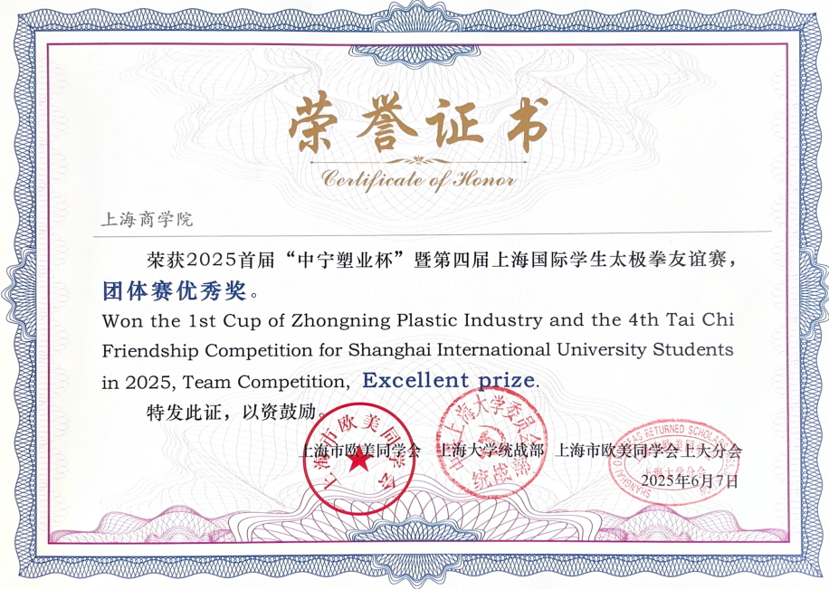武韵传情 太极绽彩 上商展风华——我校留学生太极拳队获2025年首届“中宁塑业杯”暨第四届上海国际学生太极拳友谊赛团体赛优秀奖