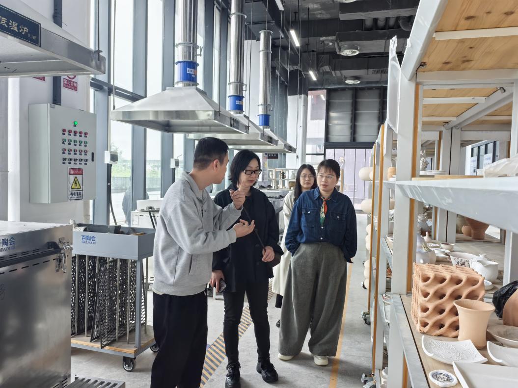 图为参观景德镇艺术职业大学实训工坊