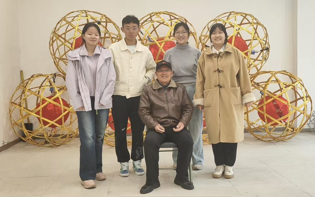 当日下午,学院部分非遗工坊的同学们来到了奉贤区柘林镇党群服务中心,拜访国家级非物质文化遗产奉贤滚灯第五代传人王正荣老师。在工作室,王老师现场为同学们讲解了传承六百余年的滚灯历史。据了解,他从事滚灯传承创新事业已40余年,从最初参与胡桥滚灯的挖掘,到不断改良制作工艺,从用镭射纸替代传统涂漆,到为滚灯加装LED灯带,开创独特的夜间表演形式,滚灯的每一次进步都饱含着王老师对滚灯艺术的热爱。在实践环节,同学们在王正荣老师指导下完成基础动作体验,深刻理解“非遗技艺需要代际坚守”的核心要义。