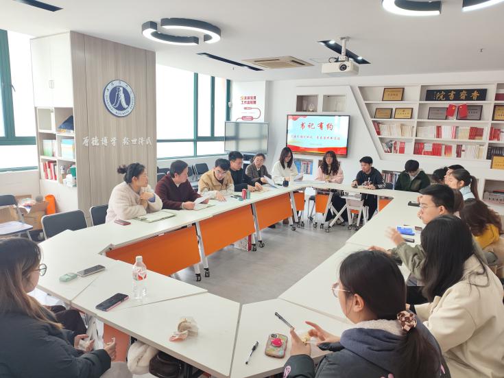 为深入贯彻党的二十大精神,全面落实党中央、国务院对高校毕业生就业创业工作的决策部署,增强毕业生党员的集体荣誉感和社会责任感,发挥党员的先锋模范作用,进一步推进毕业生就业工作,工商管理学院于2025年3月11日在行政楼116室召开“书记有约——党建引领就业风,青春逐梦新岗位主题毕业生党员座谈会”,学院党总支书记朱燕,党总支副书记、副院长蒋苏,学院学生党支部书记高雯,毕业班辅导员李俊、潘磊以及2025届毕业班党员参与座谈会,会议由潘磊主持。