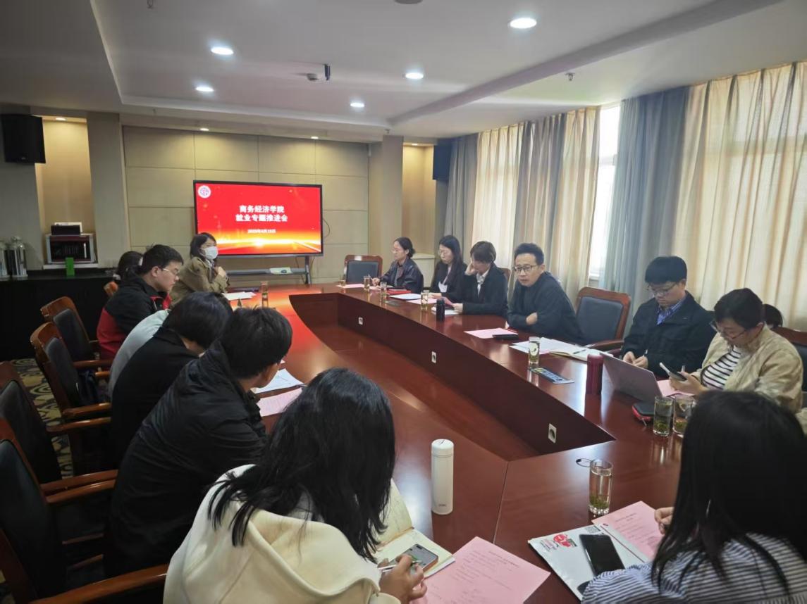 为深入贯彻党中央、国务院关于高校毕业生就业创业工作的重要决策部署,牢牢把握毕业季这一促就业的黄金关键期,切实推动2025届毕业生实现高质量实习与就业,4月15日,商务经济学院在奉浦校区701会议室召开2025届本科生和研究生春季促就业专题推进会。本次会议由商务经济学院院长李志刚主持,学院党总支书记朱嫣嫣、党总支副书记沈爱玲、副院长周宜昕,以及各系部系主任、副系主任、本科生及研究生毕业班辅导员等齐聚一堂,共商就业工作大计。