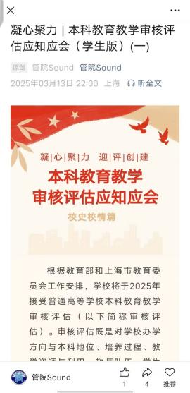 学院高度重视教育教学审核评估工作,通过多种形式开展宣传动员。各班级组织召开“迎评促建”主题班会,详细解读评估意义、流程及学生注意事项,确保每位同学了解评估、参与评估。同时,学院充分利用微信公众号等新媒体平台,推送评估知识和工作动态,增强学生的责任感和使命感。通过线上线下相结合的方式,学院形成了全员参与、全力迎评的良好氛围。