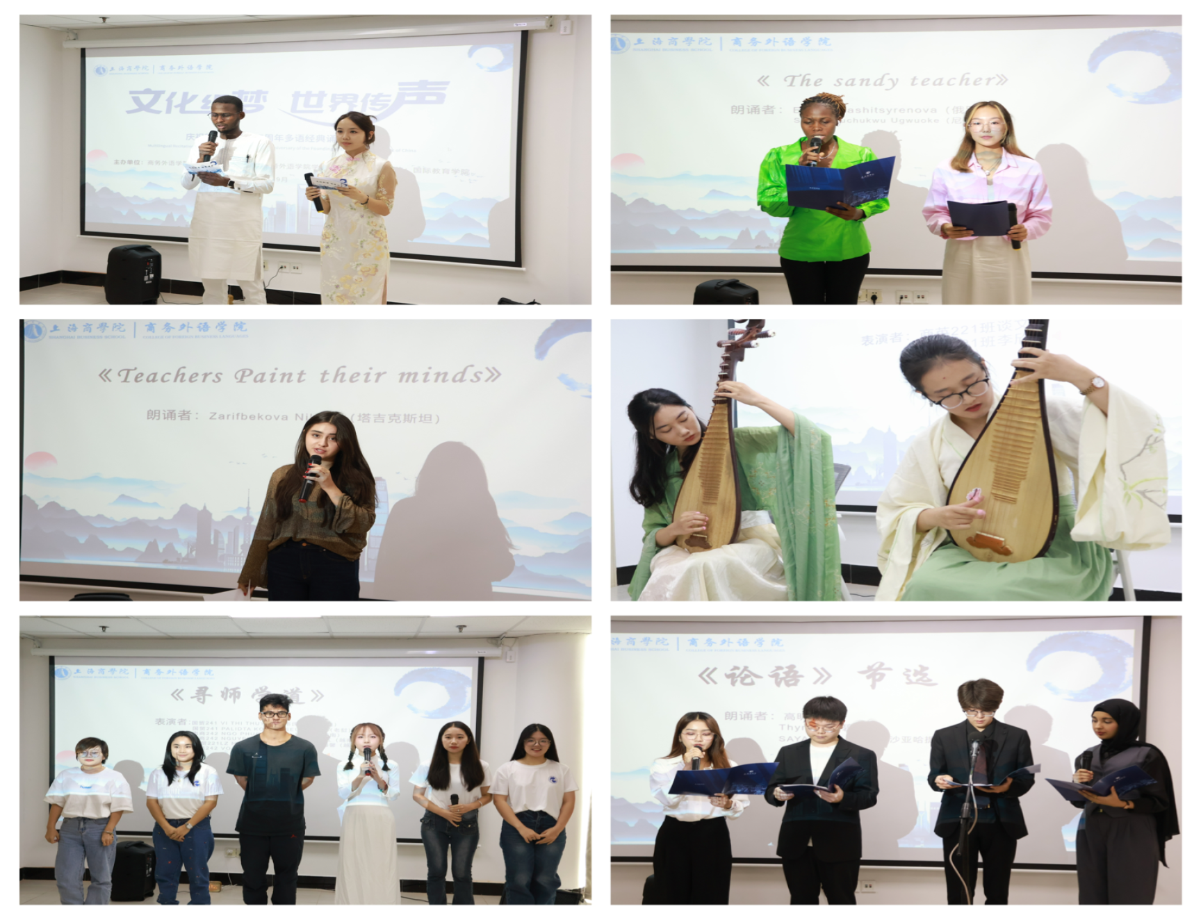 文化织梦,世界传声。9月29日上午,上海商学院奉浦校区的一间活动室里,来自中国、俄罗斯、越南、尼日利亚、塔吉克斯坦等10个国家的23名选手齐聚一堂,以各自独特的语言和艺术形式诵读中华优秀传统文化国学经典。