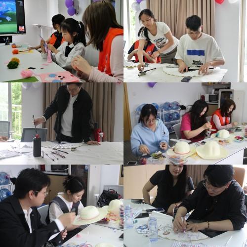 与此同时,综合楼四楼内的其他会议室也举办了形式多样的活动。在415教室,“匠心传古韵,手作寄情深”和“绣线绽童趣,巧手饰童心”活动吸引了众多校友及家属参与。校友们在月影手工社成员的指导下,制作了草帽、扇子和针织画,通过手工制作展现了校园文化底蕴,激发了校友们的创意,增进了亲子互动与同伴协作,为活动增添了独特的纪念意义。
