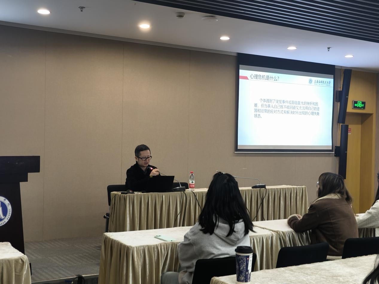 为提升新任班级心理委员专业素养,全面构建并夯实“学校-学院-班级-寝室”四级心理健康教育网络,11月11日,我校在奉浦校区综合楼422会议室举办大学生心理危机识别与预防暨2025级班级心理委员培训,此次培训由上海应用技术大学心理健康教育中心常务副主任肖君政主讲,2025级新任班级心理委员参加,培训覆盖30个班级。