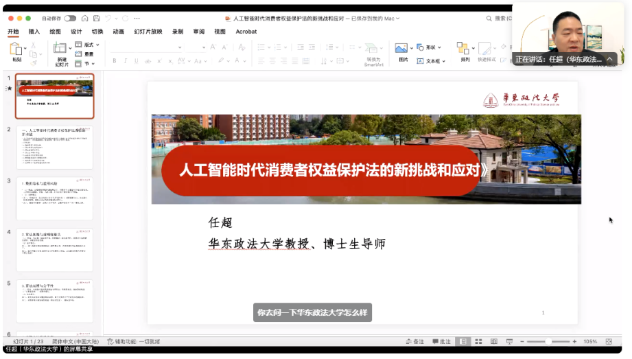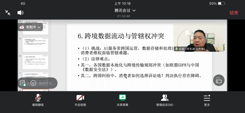 在快速发展的今天,消费者权益保护也面临着新的挑战。幸运的是,我们邀请到了华东政法大学的任超教授,为我们带来了一场精彩的讲座。任教授从常见的消费陷阱到维权方法,探讨了在人工智能时代下如何平衡隐私保护和便利生活,为我们拨开迷雾,指明方向。