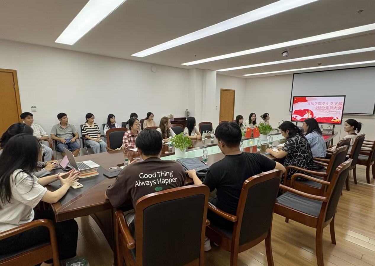 2025年9月18日,值此中国人民抗日战争暨世界反法西斯战争胜利80周年之际,文法学院学生党支部在徐汇校区1503会议室召开“弘扬伟大抗战精神 奋进民族复兴伟业”9月份主题党日活动。会议紧扣时代脉搏,围绕学习贯彻重要讲话精神、深化纪律教育、强化实践担当,展开了一场思想的洗礼,为青年党员筑牢信仰之基、激发奋进之力注入了强劲动能。