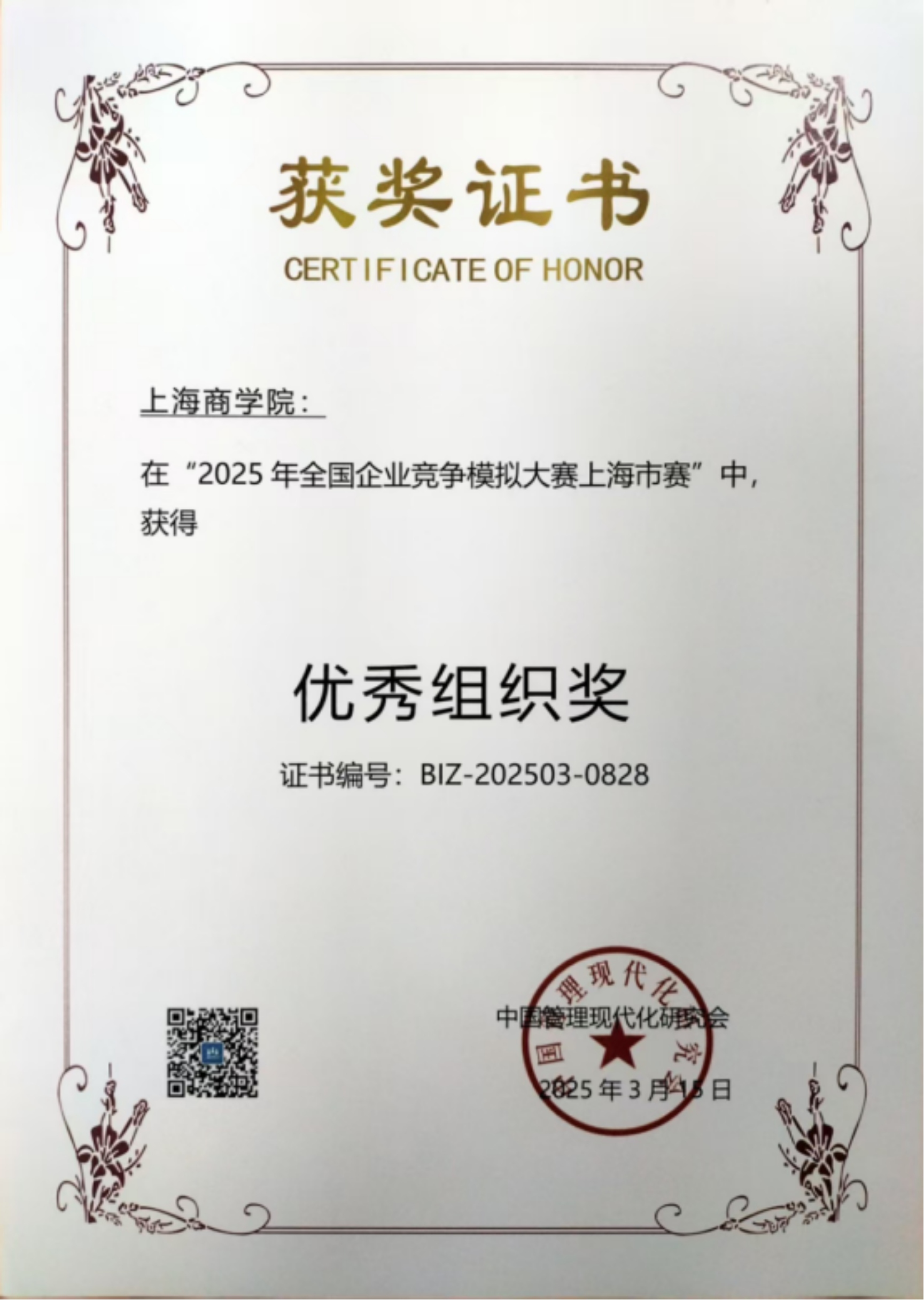 近日,全国企业模拟大赛上海市赛圆满落幕,上海商学院在此次比赛中成绩斐然,不仅荣获优秀组织奖,更有“柿嗦豆” 小组等八组学生在市赛中获奖。