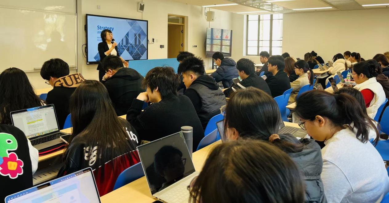 蔡玉蓉以隆中对,韩信指出刘邦的野心,和四野活捉廖耀湘的故事为例,解读战略能力的重要性。她强调,“无论是企业突围还是个人发展,战略思维都是破局关键”。我们同学们是商务和管理类专业,要想在任何技术门槛高且收入高的行业里面建立我们自己的能力护城河,我们只能靠比别人更强的战略设计能力。此外,她还通过真实商战中的若干案例, 为大家分享了战略的形成过程。
