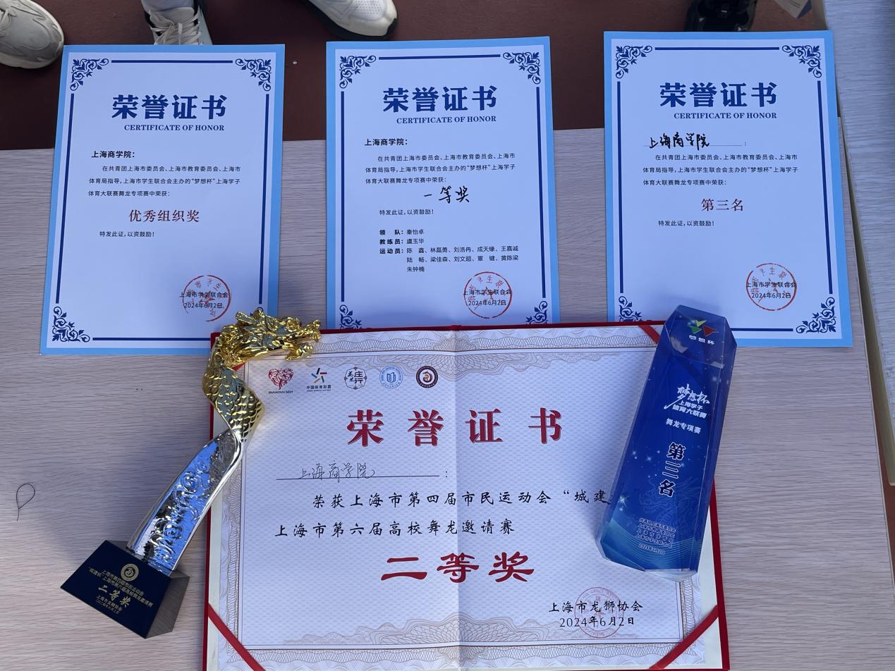 端午乘祥风,龙舞腾盛世。6月2日,校团委组织上海商学院竞技舞龙队赴上海城建职业学院奉浦校区参加“梦想杯”上海学子体育大联赛舞龙专项赛暨第六届“城建杯”上海市高校舞龙邀请赛,我校竞技舞龙队获得“梦想杯”上海学子体育大联赛舞龙专项赛一等奖、第六届“城建杯”上海市高校舞龙邀请赛二等奖的好成绩,我校获优秀组织奖。校团委书记卜树俊参加本次活动,体育健康学院虞玉华老师担任教练。